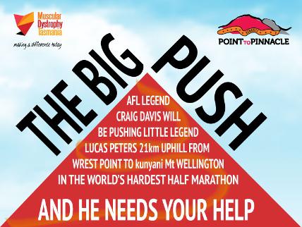 The Big Push saw Craig push Lucas from Wrest Point Casino to the pinnacle of Mount Wellington. They need our help to reach $100k, having already raised over $75k!! Every contribution large or small makes a huge difference. Please click the link above to donate to this wonderful cause. Well done to both you legends for such a huge effort today